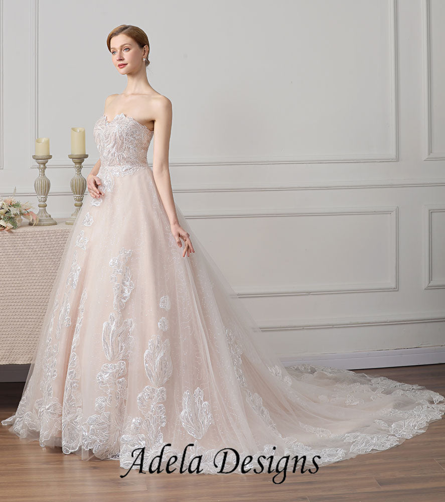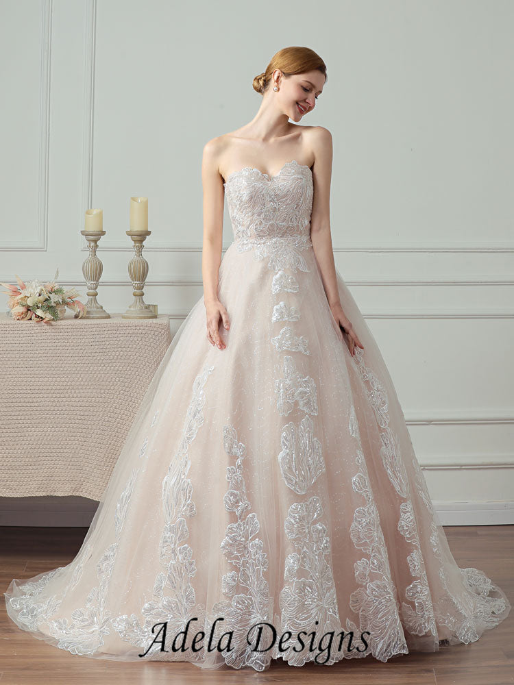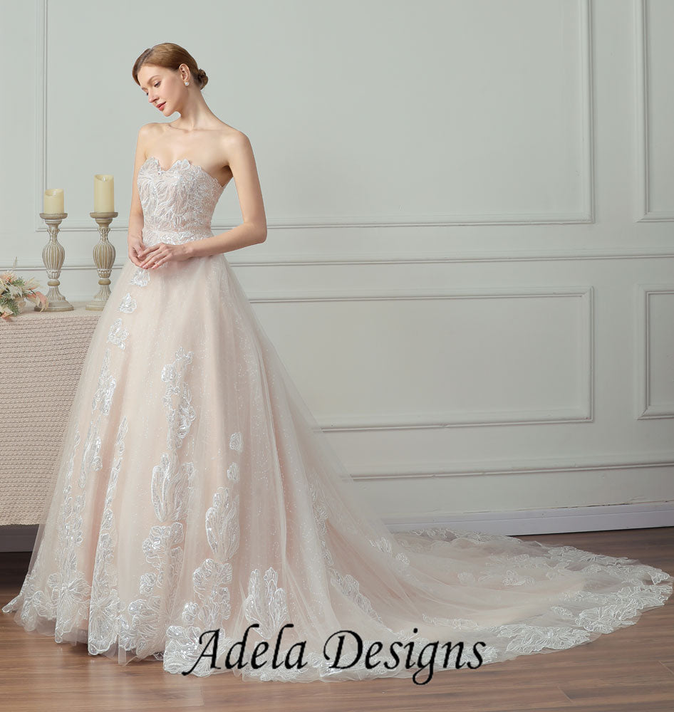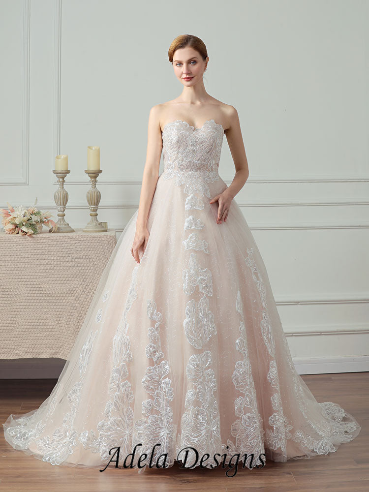 Sparkle Sequined Lace Tulle Ball Gown Sweetheart Wedding Dress With Lace-Up Back.