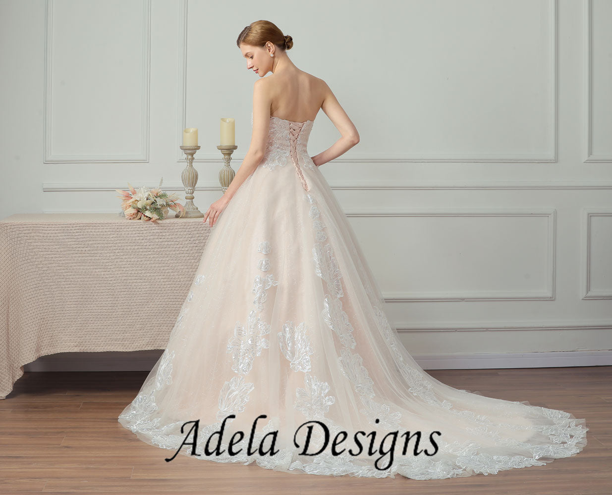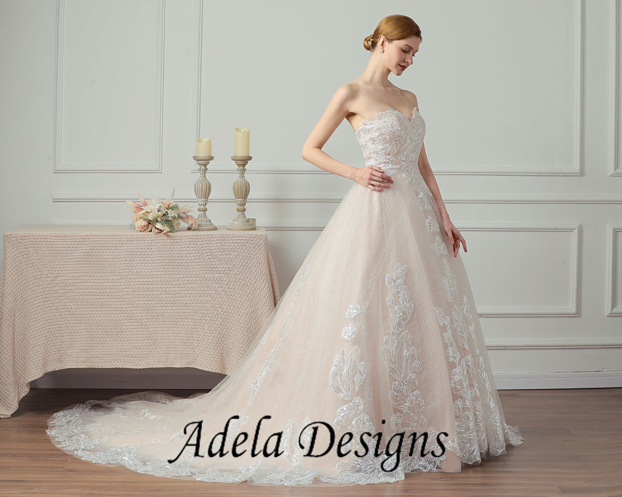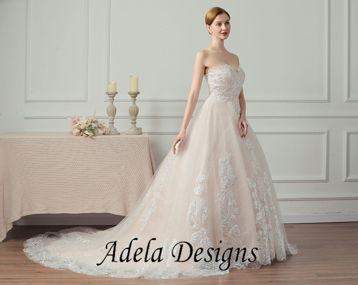 Sparkle Sequined Lace Tulle Ball Gown Sweetheart Wedding Dress With Lace-Up Back.